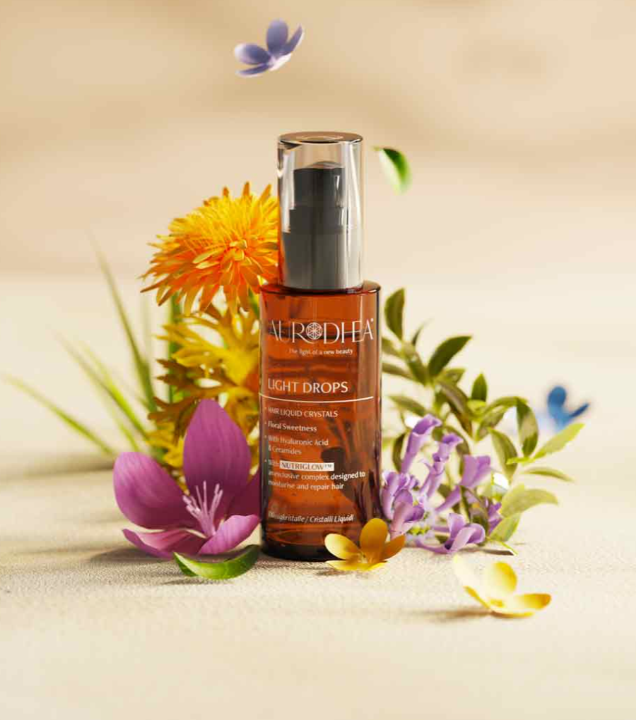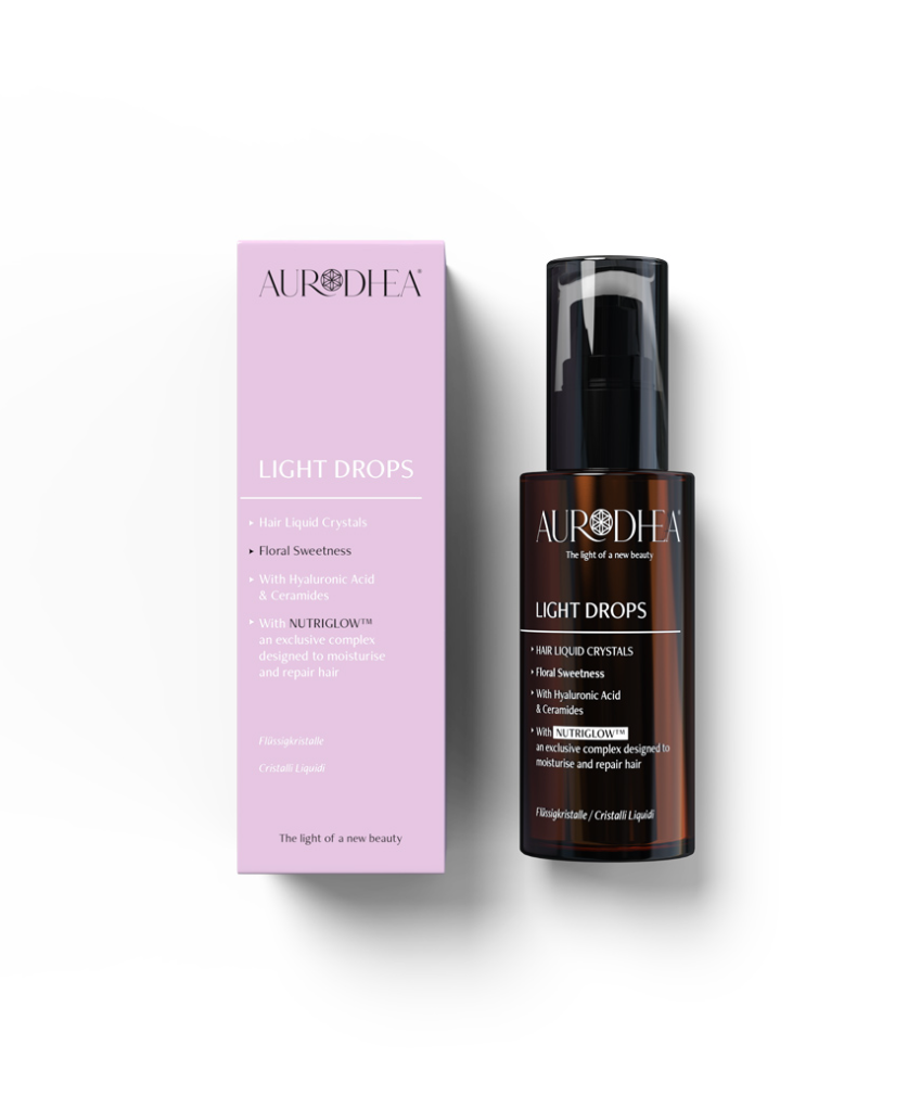 Die Flüssigkristalle Light Drops Floral Sweetness von Aurodhea verleihen trockenem, geschädigtem und strapaziertem Haar ein glänzendes Finish. Diese Flüssigkristalle zeichnen sich durch einen zarten Duft aus und sind für alle Haartypen geeignet. Sie pflegen das Haar und verleihen ihm schimmernde Reflexe. Der exklusive Komplex NUTRIGLOW™ mit Süßmandelöl, Leinöl und Ceramiden spendet Feuchtigkeit, repariert das Haar und sorgt für sichtbar weniger Frizz und leichtere Kämmbarkeit. Die silikonfreie Formel enthält zudem Hyaluronsäure, die das Haar mit einem unsichtbaren Schutzfilm umhüllt, es bändigt und angenehm weich macht.